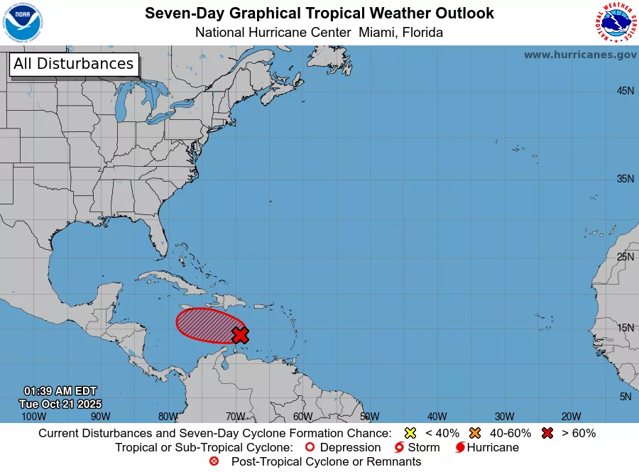 Santo Domingo.- El Instituto Dominicano de Meteorología (Indomet) informó este martes que da estricto seguimiento a una activa onda tropical asociada a un centro de baja presión localizada a varios cientos de kilómetros al sur de la República Dominicana, en aguas del mar Caribe, la cual presenta un 90 % de probabilidad de convertirse en ciclón tropical en los próximos siete días.
